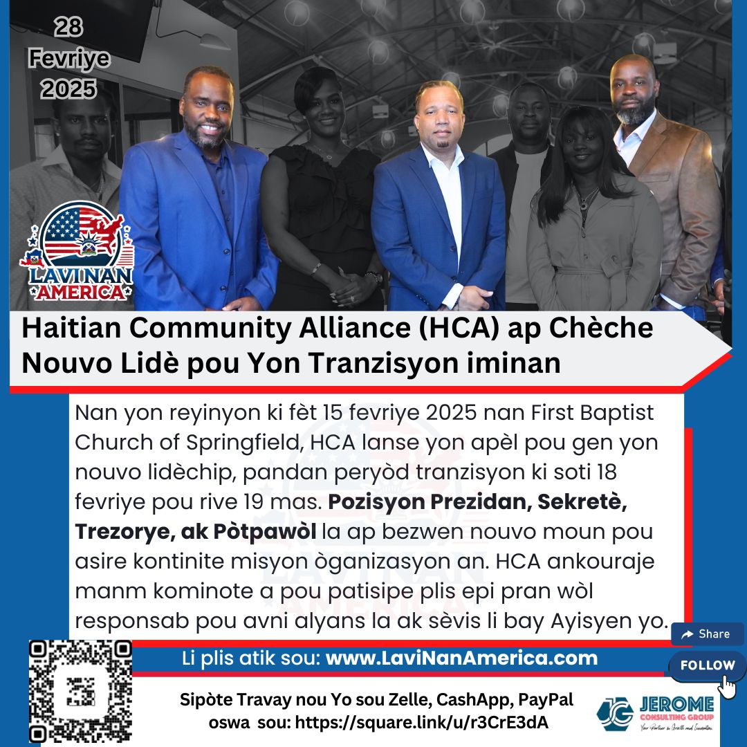 SPRINGFIELD, OH – Haitian Community Alliance (HCA) lanse yon apèl ijan pou yon nouvo lidèchip pandan li ap prepare pou yon tranzisyon enpòtan. Aprè reyinyon ki fèt 15 fevriye 2025,…